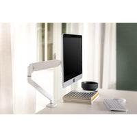 Ekrano laikiklis su dvigubu dujiniu amortizatoriu. Prie lengvai reguliuojamo stovo pritaisytas monitorius, ar nešiojamas kompiuteris visada bus akių lygyje, o ant darbastalio atsiras papildoma erdvė. Susikurkite ergonominę darbo aplinką, saugokite savo akis, nugarą bei kaklą ir padidinkite savo produktyvumo lygį.
